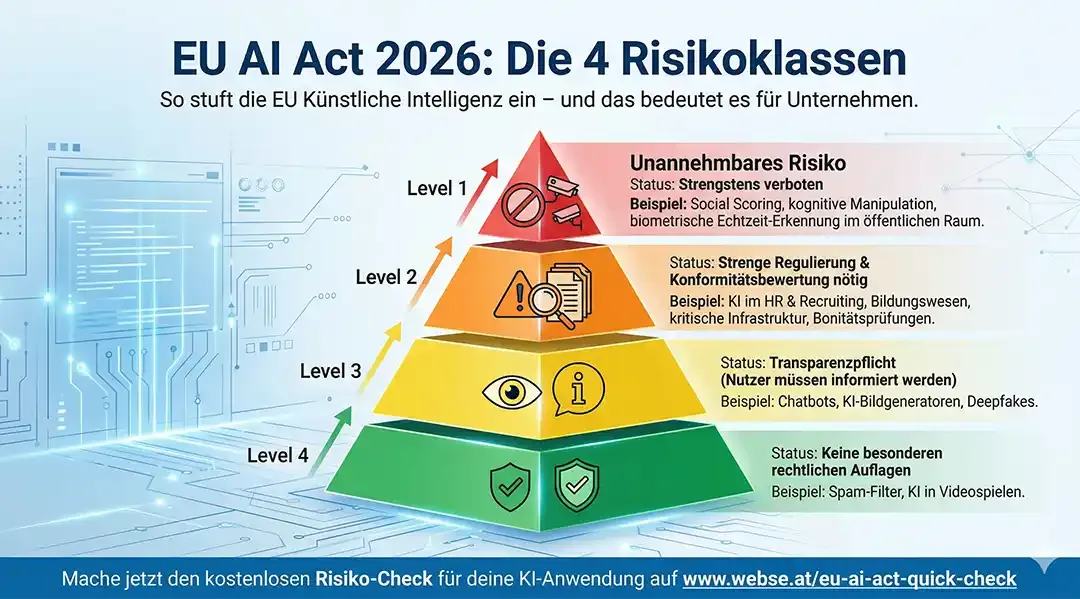 Das Herzstück des AI Acts ist die Einstufung von Anwendungen nach ihrem Risiko. Je höher das Risiko für die Sicherheit oder die Grundrechte, desto strenger sind die Anforderungen an die Transparenz und die technische Dokumentation.